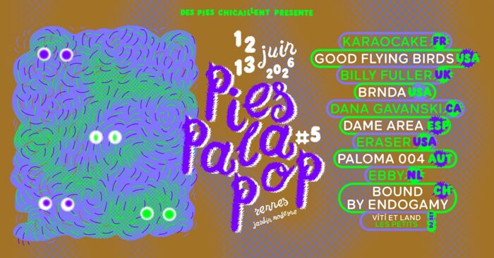 On vous avait déjà annoncé que la cinquième édition de l’épatant Pies Pala Pop festival aurait lieu les 12 et 13 juin 2026 au Jardin Moderne. On espère que vous avez bien bloqué les dates, car l’asso Des Pies Chicaillent vient de dévoiler sa très affriolante programmation et elle est diablement excitante. Comme d’habitude, on vous détaillera tout ça très prochainement, mais, en attendant, voici déjà un premier petit tour d’horizon rapide de ce qui vous y attend.