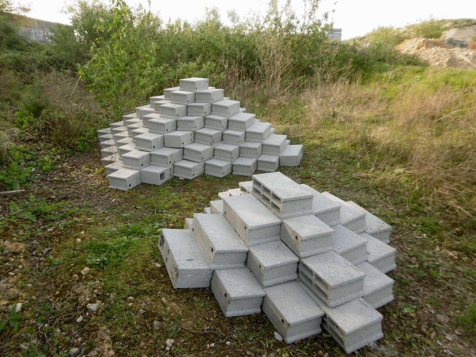 « Ce n’est pas la première fois que j’interviens avec des sapins abandonnés. Je m’étais amusé à en peindre certains à la bombe. J’en ai d’ailleurs même bricolé un sur roulette dans le cadre d’une expo. L’idée est de leur donner une seconde vie. Une fois abandonnés dans la rue, ils deviennent aussi une matière première. Dans ce cas précis, je les ai trouvés sur place et regroupés sur les buttes de terre. Cette intervention fait office de test et pourrait être réactivée à plus grande échelle avec beaucoup plus de sapins replantés. Comme pour l’aménagement léger ou la pyramide de brique (NDLR : voir ici) sur laquelle nous nous sommes assis, il y a une volonté d’aménager le territoire comme pourrait le faire un paysagiste mais avec les moyens du bord et en tenant compte des caractéristiques du terrain vague et de ce qu’on peut y trouver parmi les ordures… Bien sûr, à travers le sapin, on peut y voir l’objet de consommation que l’on jette comme une denrée périssable »