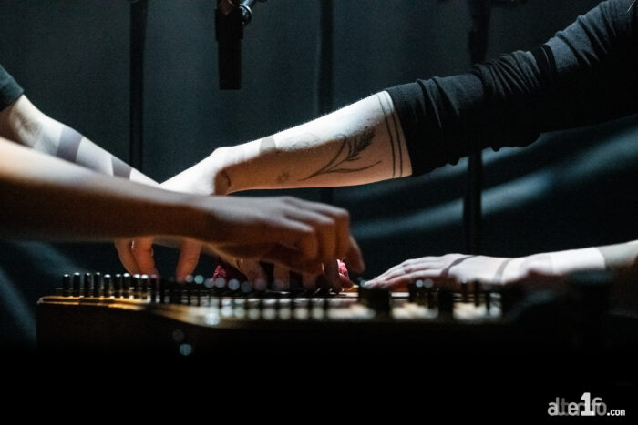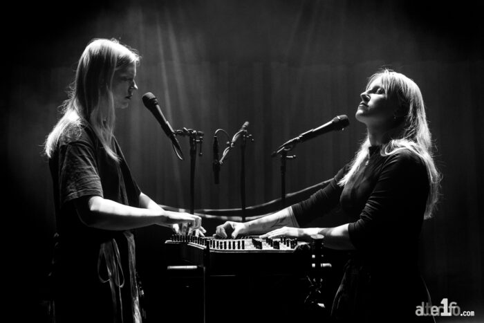 La soirée démarrait fort avec les estoniennes Duo Ruut. Ann-Lisett Rebane et Katarina Kivi s’installent face à face, de part et d’autre de leur kannel. L’alliance de leur voix et des sonorités à la fois limpide et entraînante de cet instrument atypique captive dès les premiers morceaux. Cette cithare estonienne dont on pince ou percute les cordes accompagne plus traditionnellement les mariages, les fêtes de village ou les chanteurs de rue. Sauf qu’il est plus communément joué en solo et que le fait de le manier à quatre mains, ajoutées à des jeux de percussions ou de glissé d’archer élargit le champ des possibles de leurs compositions. Voix mêlées, bras entrecroisés, la réjouissante complicité qui se joue devant nous est assez irrésistible. Ajoutez à ça, que leurs chants de mauvais temps et de chevaux morts distillent une mélancolie qui fait vibrer toutes nos cordes sensibles. L’Antipode est donc rapidement sous le charme et le public réserve un accueil plus que chaleureux au duo. Avec malice et pédagogie, les deux jeunes femmes expliquent les thématiques et leur démarche dans des interludes fort plaisants. Malgré des thèmes souvent sombres, leur prestation dégage une luminosité qui nous fait un bien fou.
