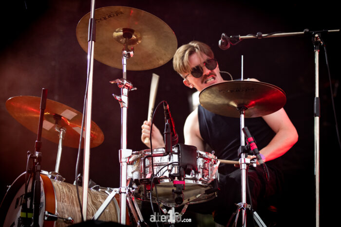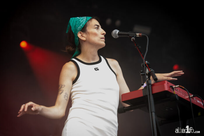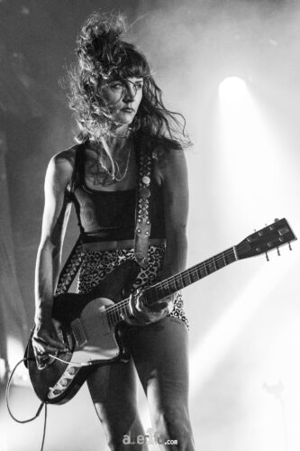Portée par une productrice (c’est assez rare pour qu’on le souligne), Maryam Qudus (La Luz, Spacemoth) aux doigts de fée plutôt que de sorcière, la bande y délivre un trip halluciné de garage psyché contaminé de dance rock et délivre un album qui gagne en variété. Làs, les subtilités qu’on retrouvait sur ce dernier album sont ce soir gommées au profit de l’efficacité live avec un set calibré pour une fin de soirée en festival. C’est tant mieux pour l’ambiance et les pogos survoltés d’un public qui ne demande que ça (du moins celles et ceux qui aiment le garage psyché). C’est pour notre part un tantinet moins notre came. Bien qu’on reste hypnotisé.es par les sourcils, les cheveux et les bas-résilles phosphorescents de Nikki Pickle et son jeu de basse et qu’on se montre plutôt emballé.es par l’introduction de ce clavier retors et addictif qui teinte ces morceaux certifiés garage millésime d’un dance rock qui n’est pas pour nous déplaire. On écoute donc quelques morceaux mais voyant que les cinq en resteront manifestement là, on s’éclipse avant la fin, histoire de tenir jusqu’à demain.