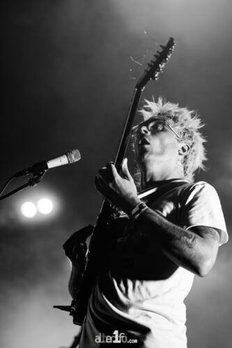 Et si quelques titres de The Overload passent encore crème, comme le nonchalant Land of the Blind et son gimmick entêtant (Ba Ba Ba Baba Bow), le nouveau son des quatre compères lisse les titres du premier album. Pas de bol, ils composent quasiment l’intégralité de la deuxième partie du set. Si Pour Another et Fixer Upper passent à peu près correctement le cut, le dance-punk The Overload perd cruellement son côté punk pour ne conserver que le côté dansant. Ce n’est pas désagréable, le public passe un très bon moment (et nous aussi), mais on est une nouvelle fois frustrés par un set qui ne tient pas la longueur. Preuve en est, le quatuor meuble comme il peut une fin de concert poussive sur The Trench Coat Museum (pourtant excellent single sorti en 2023), en faisant s’asseoir le public pour balancer dix secondes d’une montée sonore bricolée à la va-vite.